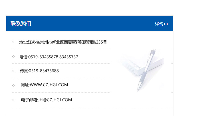 地址:常州市新北區友邦商務大廈1幢16、17層  電話:0519-85101652  傳真:0519-85112595  郵編:213022  網址:www_cz-jiayue_cn.shoesbp.com  郵箱:xiajifengaa@163.com